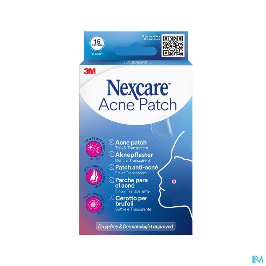 Les patchs Nexcare™ Acne Patches sont des pansements doux mais efficaces pour le visage et le corps. Ces pansements transparents non desséchants agissent comme une éponge pour absorber le pus et le sébum des pores obstrués. Discrets, ils forment une couche protectrice qui réduit l'envie de toucher et de presser les imperfections. Respirants et confortables, ces patchs peuvent être portés de jour comme de nuit. Ils conviennent à la plupart des types de peau, y compris les peaux normales, sèches, grasses ou mixtes. L'utilisation d'un patch est simple : retirez-le de son emballage et appliquez-le sur une peau propre et sèche. Lorsque la couleur passe de transparente à blanche, vous savez que le patch a fini d'agir. Ces patchs anti-boutons ne contiennent pas de latex de caoutchouc naturel, ne sont pas médicamenteux et ne contiennent aucun médicament. Ne pas utiliser avec des produits ou traitements médicamenteux. Consultez un médecin si votre affection cutanée s'aggrave. Ce paquet contient 15 patchs anti-boutons Nexcare™.